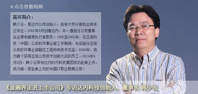 韩少云谈达内科技上市后规划:上下游并购 扩大规模