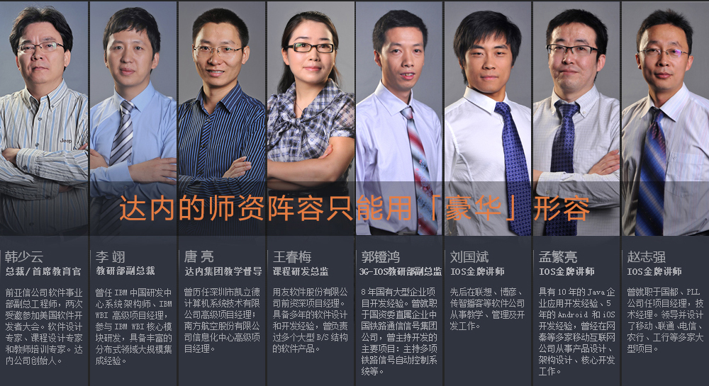 5位顶尖技术专家与3位终身制职业发展顾问按照课程体系教1名学生,是达内独创的8师制。