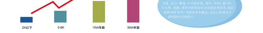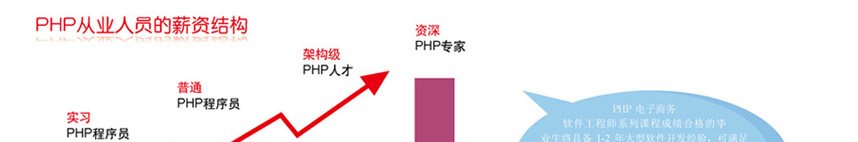 目前已有超过40% 的互联网应用使用PHP 来编写,百度、腾讯、新浪、搜狐、TOM 等各大互联网公司以及各种门户网站和社区都广泛使用PHP 技术,企业对PHP 人才的需求越来越大,PHP 从业人员年薪2 年也可突破10 万。但是,由于PHP 人才储备不足,导致PHP 人才匮乏,在市场上仍严重供不应求。