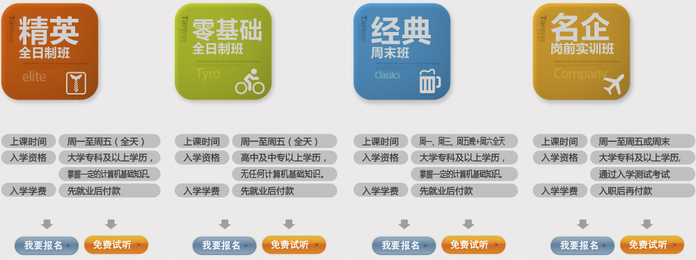 免费赠送以下课程(选修):周末+晚上 5天基础训练营(针对基础薄弱的学员的基础编程技能培训) 3天职业发展课程(针对所有学员的职业"软"技能培训) 5天Xamarin课程(在线) |