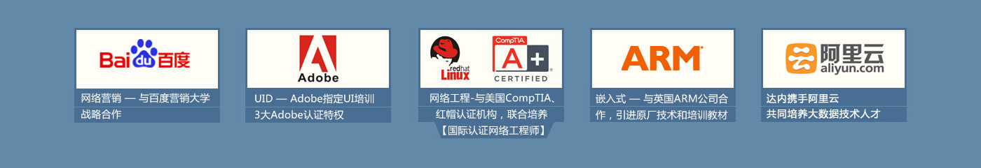 与Oracle、Adobe、ARM、百度、Red Hat合作培养人才,将原厂核心技术引入达内课程,