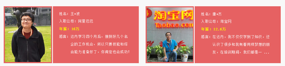 我们不惜花重金与股权聘请业界权威导师,达内讲师薪酬比同行高出50%。