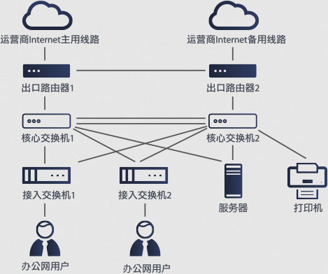 • 配置出口两台路由器,实现内网用户访问外网的NAT地址转换;