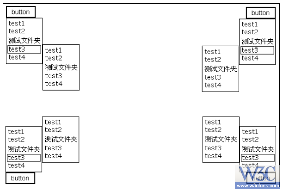 2. 菜单出现的方向根据所在页面的位置自动进行调整,例如: