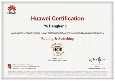 拥有通过HCIE-R&S认证的工程师,意味着企业有能力独立搭建完整的大中型复杂网络,将企业中所需的语音、无线、云、安全和存储全面地集成到网络之中,并且能满足各种应用对网络的使用需求,能够提供完整的故障排除能力,能根据企业和网络技术的发展规划企业网络的发展,并提供高安全性、可用性和可靠性。