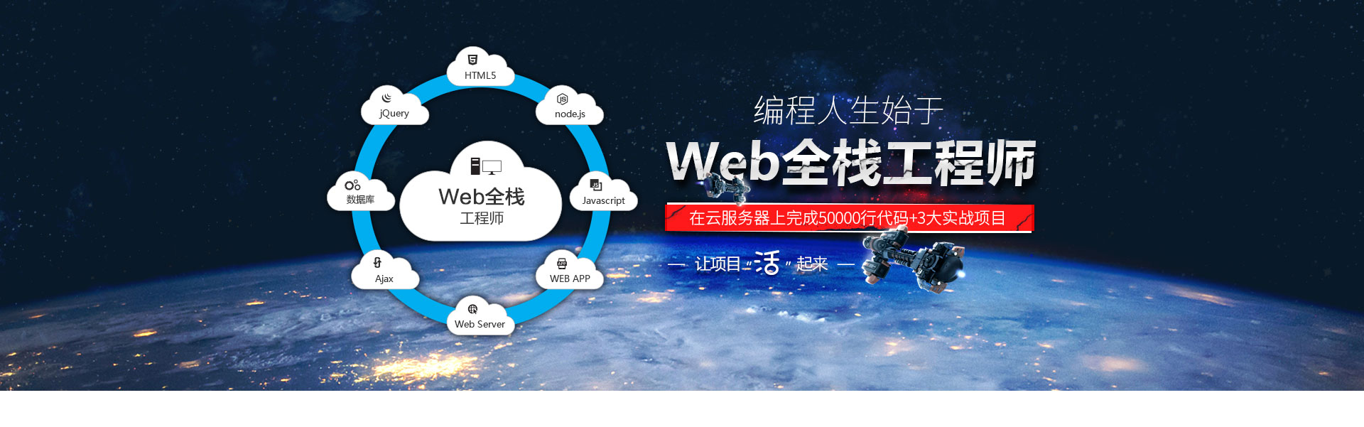 课程升级 —— 课程结合了前端H5,后端node.JS和移动端APP开发,致力于培养的全栈人才