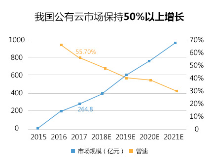 2017 年我国云计算整体市场规模达691.6 亿元,其中,公有云市场规模达到264.8亿元,相比2016 年增长55.7%
