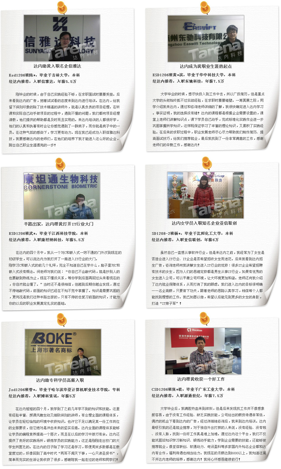达内的每一位老师都很亲切,讲师的幽默授业、助教的耐心解惑、项目经理的循循答疑、班主任老师的热心辅导,时间久了,这里的一切会让你不自觉的有种归属感。四个月的时间很不经意的就过去了,慢慢地,当毕业临近,伴随着一个又一个学生的就业喜讯,喜悦的同时也充斥着一幕幕感动,如达内历届上演着的"达内人的感动"。在这里,我由衷的感谢一直默默陪伴着我们的班主任老师,您鼓励我们走过了这温馨的日子。