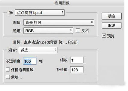 减去到底减去什么?当然是减去刚刚我们模糊的图层!数值是固定的,缩放1,或者2,补偿值128。具体参数如下。怕记不住的同学这里可以保存一下了。