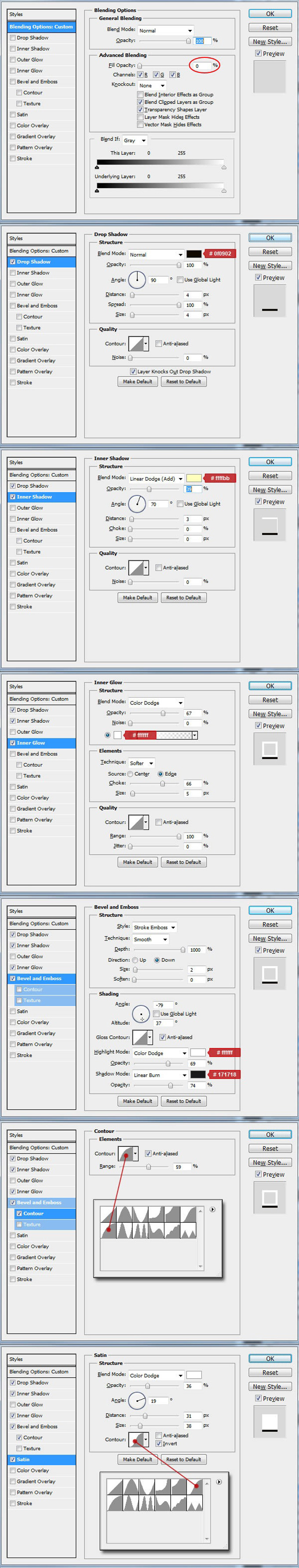 斜面和浮雕选项(描边浮雕 高光:颜色减淡 阴影:线性加深 )