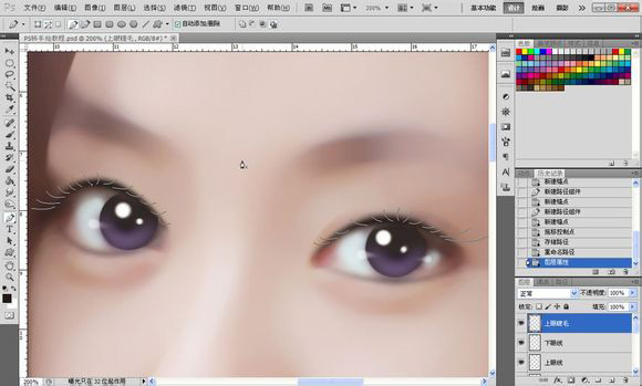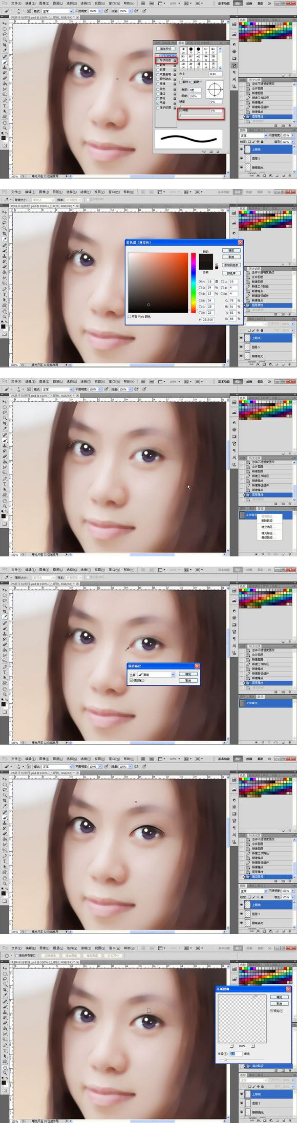 17、接着就是眼睫毛了,不要吐槽我勾的路径= =!之后描边路径,模拟压力,画笔数值如图所示。