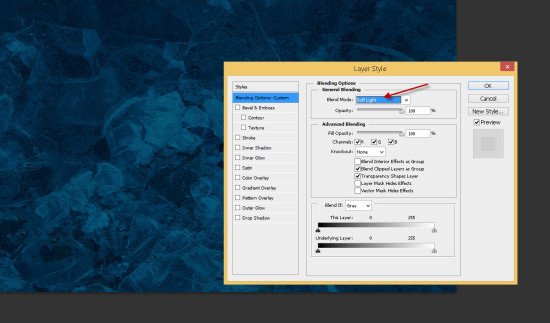 3、将其混合模式改为柔光。