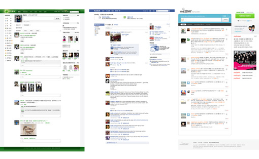 主要以分享、交流信息为主的社区网,有如上面门户网信息获取性质,所以配色上比较简洁清爽。但各社区网又各自有自己的核心目标用户群,所以在配色方面带有各自的特点。如校友核心用户是在校学生,页面顶端上的banner运用活泼的绿色调来渲染青春朝气的氛围.