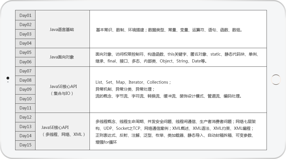 达内Java课程表