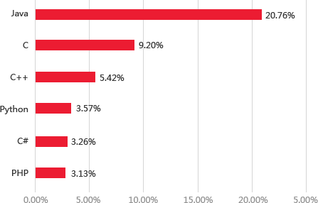 根据2016年11月TIOBE开发语言排行榜宣布的流行开发语言的排名结果, Java仍然高居榜首,在国内的软件开发企业中,Java语言的使用比例也排名 第一。