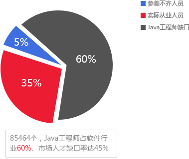 根据IDC的统计数字:我国Java人才的缺口已达25.5万,并且以每年20%左右 的速度增长。在未来5年内,合格软件人才的需求将远大于供给。