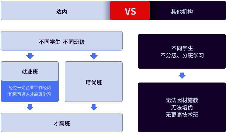 为什么要推出差异化教学模式?达内推出因材施教、分级培优有两个好处: