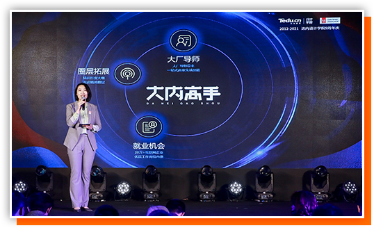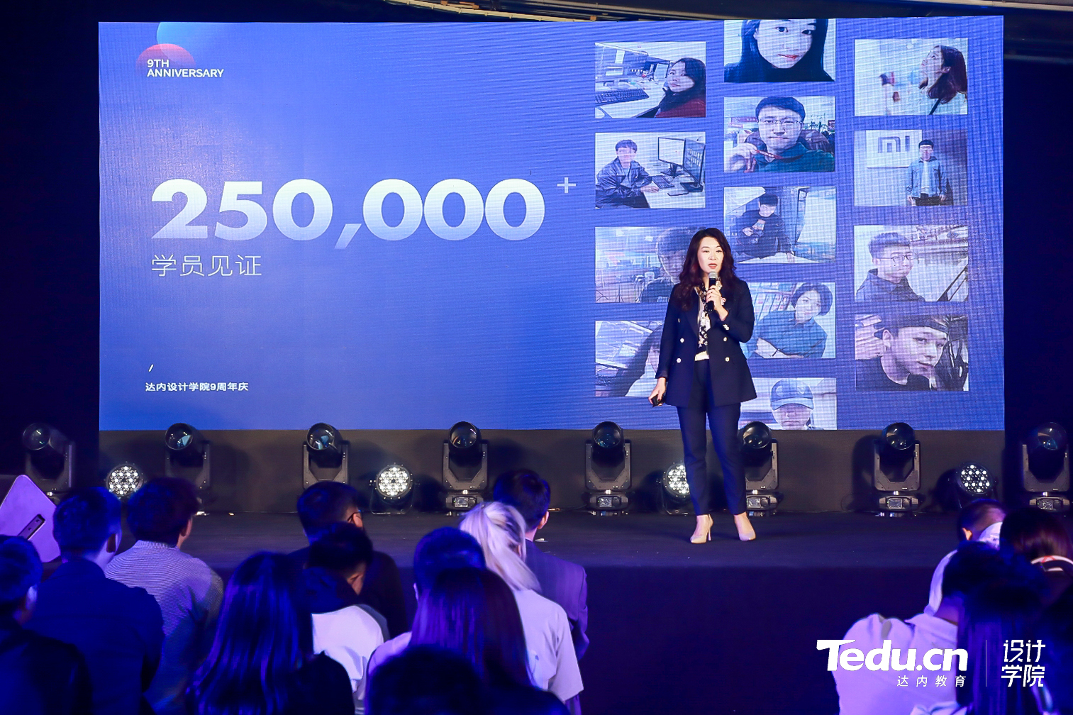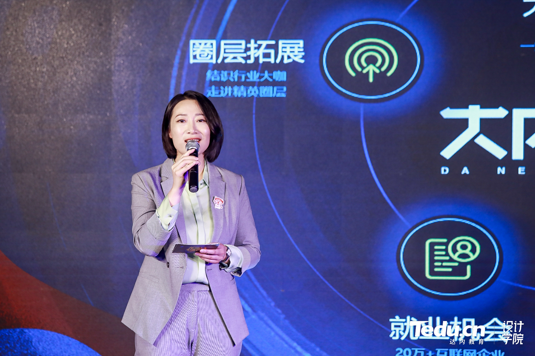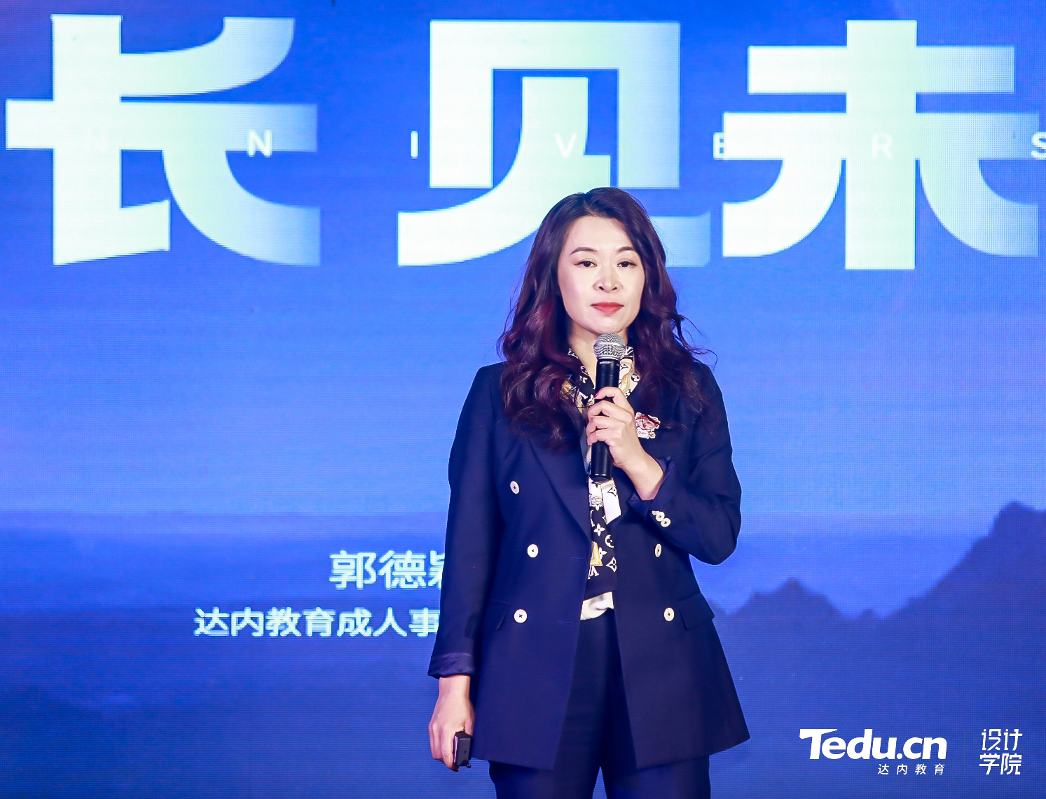 达内教育成人事业部副总裁郭德颖女士回顾了设计学院的9年成长,5大课程体系/54家中心/20万合作企业,助力25万学员实现职业梦!并提出“职业胜任力”、“职业竞争力”、“职业发展力”三个维度的能力培养,达内为中国数字经济发展培养π型人才,为每一份职业梦想提供一条可行之路。