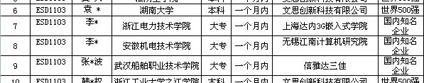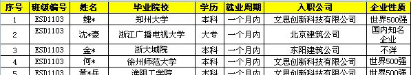 【达内嵌入式1103班部分学员就业情况统计列表】